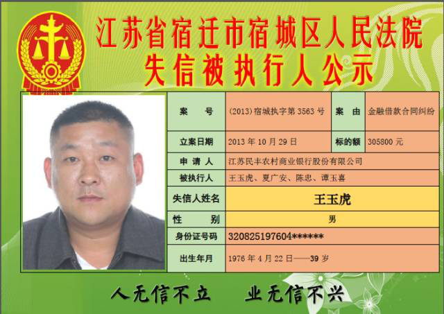 為切實(shí)保護(hù)當(dāng)事人合法權(quán)益,維護(hù)法律尊嚴(yán),服務(wù)地方經(jīng)濟(jì)和社會發(fā)展大局,宿城區(qū)人民法院決定將下列未自覺履行生效法律文書確定義務(wù)的被執(zhí)行人予以曝光,以督促被曝光的被執(zhí)行人及時(shí)履行法律文書確定的義務(wù)。歡迎廣大網(wǎng)友積極提供失信被執(zhí)行人財(cái)產(chǎn)線索、高消費(fèi)線索,可通過微信公眾號留言。