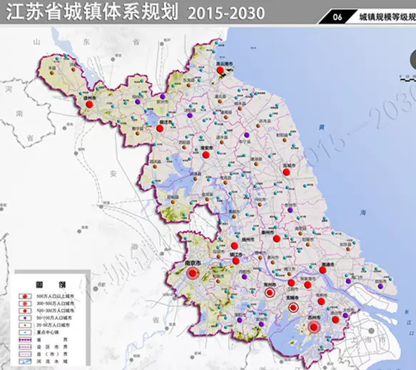 2012年時(shí)江蘇提出城市等級(jí)規(guī)模體系目標(biāo):到2015年全省將形成11個(gè)人口超百萬(wàn)的特大城市。而根據(jù)《規(guī)劃》,至2030年,全省共將形成2個(gè)特大城市、15個(gè)大城市、11個(gè)中等城市、27個(gè)小城市和540個(gè)鎮(zhèn)的城市等級(jí)規(guī)模體系。