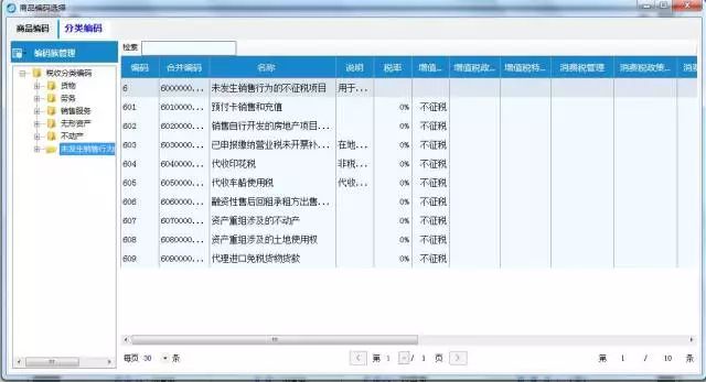 實(shí)務(wù)中,可以開(kāi)具不征稅的普通發(fā)票遠(yuǎn)遠(yuǎn)超過(guò)以上幾種情況,打開(kāi)增值稅開(kāi)票系統(tǒng),在“商品編碼-稅務(wù)編碼”欄目類,可以清楚地看到系統(tǒng)自帶的屬于“未發(fā)生銷(xiāo)售行為的不征稅項(xiàng)目”里,羅列了以下信息: